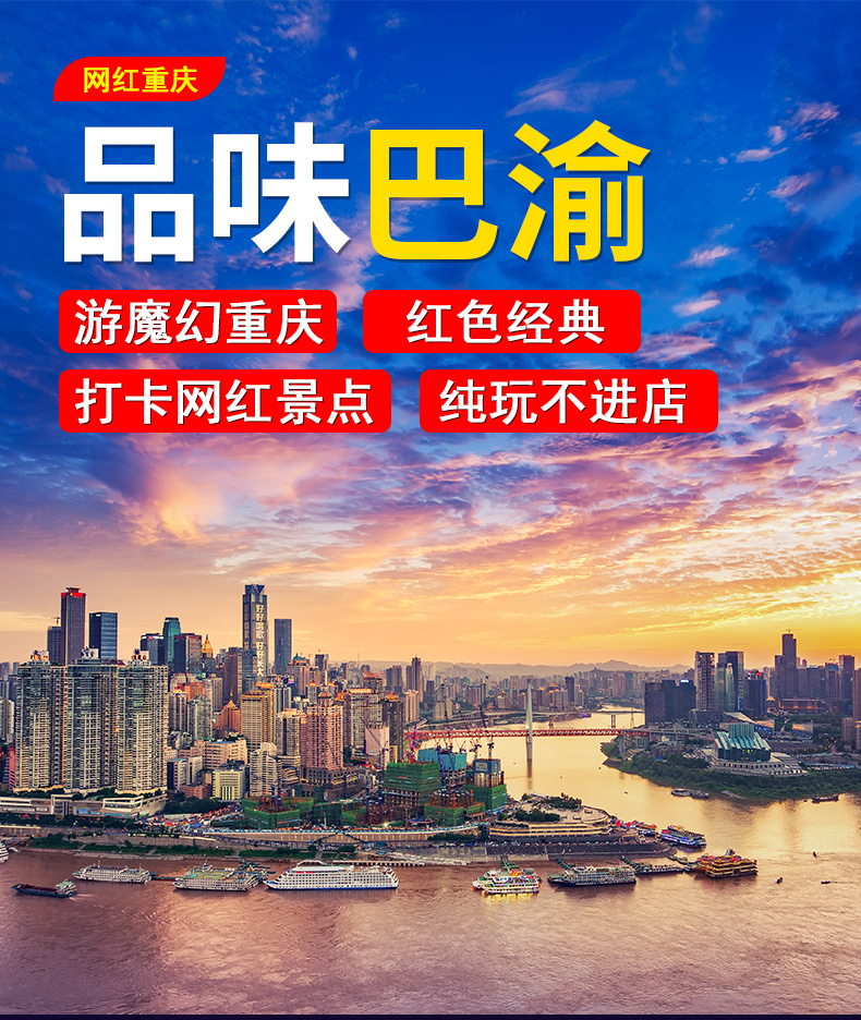 ● 乘車環(huán)游【渝中半島】觀兩江四岸風(fēng)光,渝中半島位于重慶市嘉陵江與長江交匯處的狹長半島形陸地上,因其全境在渝中區(qū),所以稱為渝中半島,是重慶市政府駐地,是重慶的政治、經(jīng)濟(jì)、文化中心。