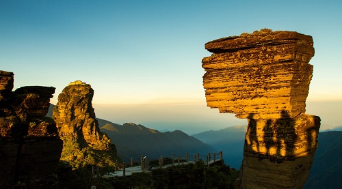 作為重慶出發(fā)的朋友,大多數(shù)到第一站就是銅仁,而這里最出名的就是梵凈山了。剛不久才申遺成功,也算是值得慶賀的事而啦。梵凈山原始生態(tài)保存完好,擁有豐富的野生動植物資源,比如黔金絲猴、珙桐等珍稀物種。風景美麗自然,進入山區(qū)完全找不著人工景觀,古老地質形成的特殊地質結構,塑造了它千姿百態(tài)、崢嶸奇?zhèn)サ纳皆赖孛簿坝^。