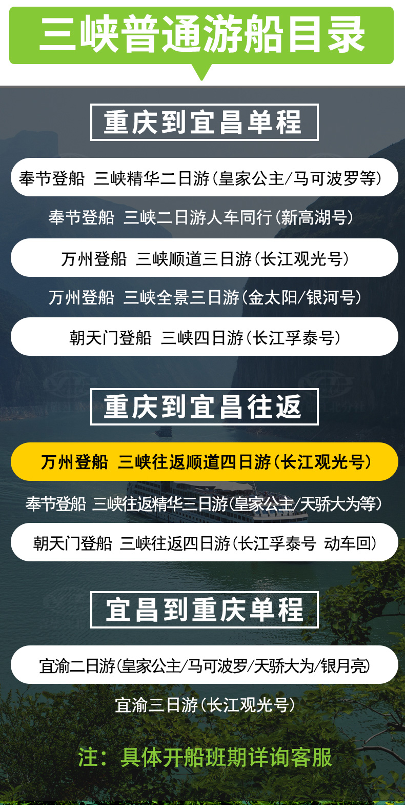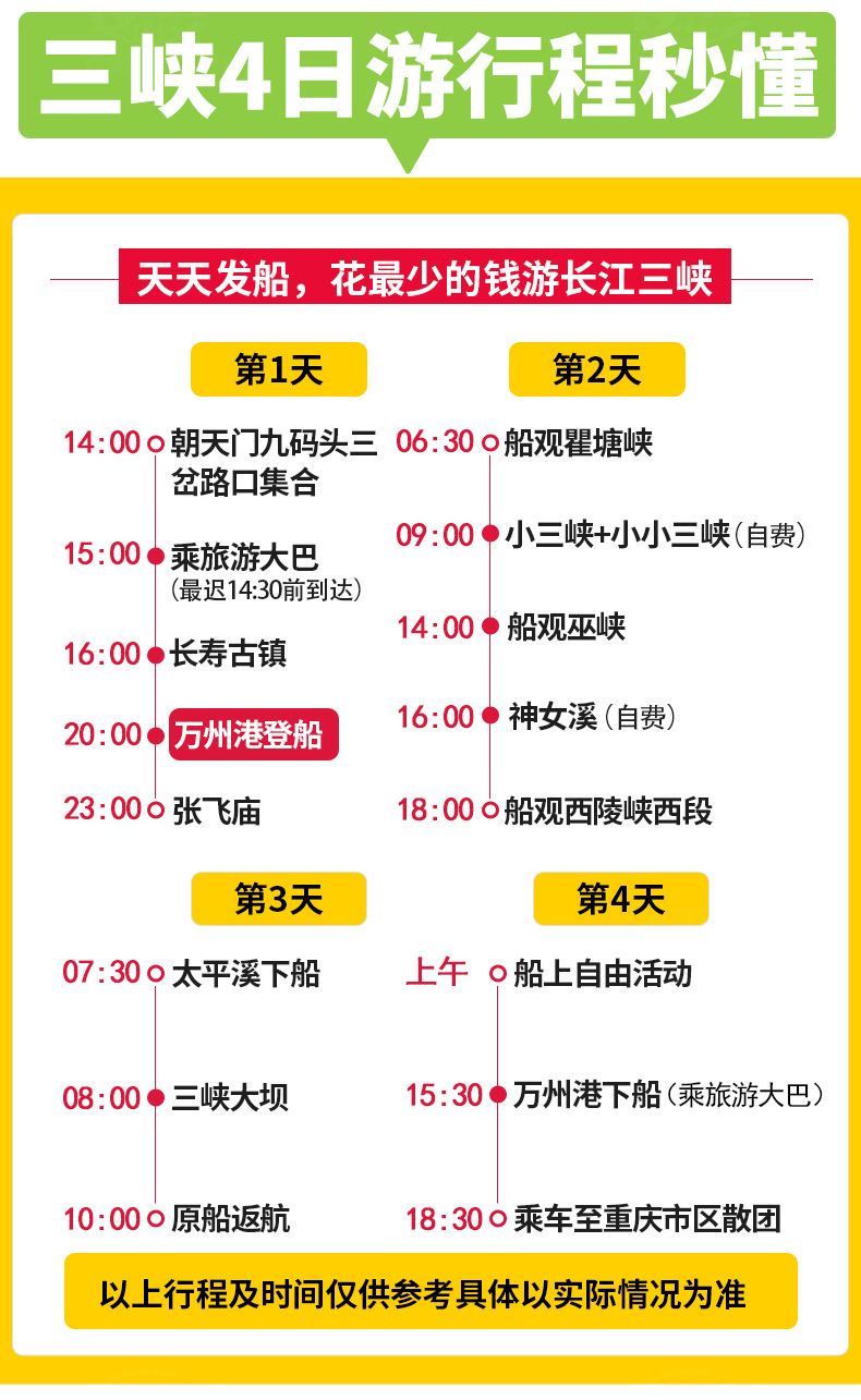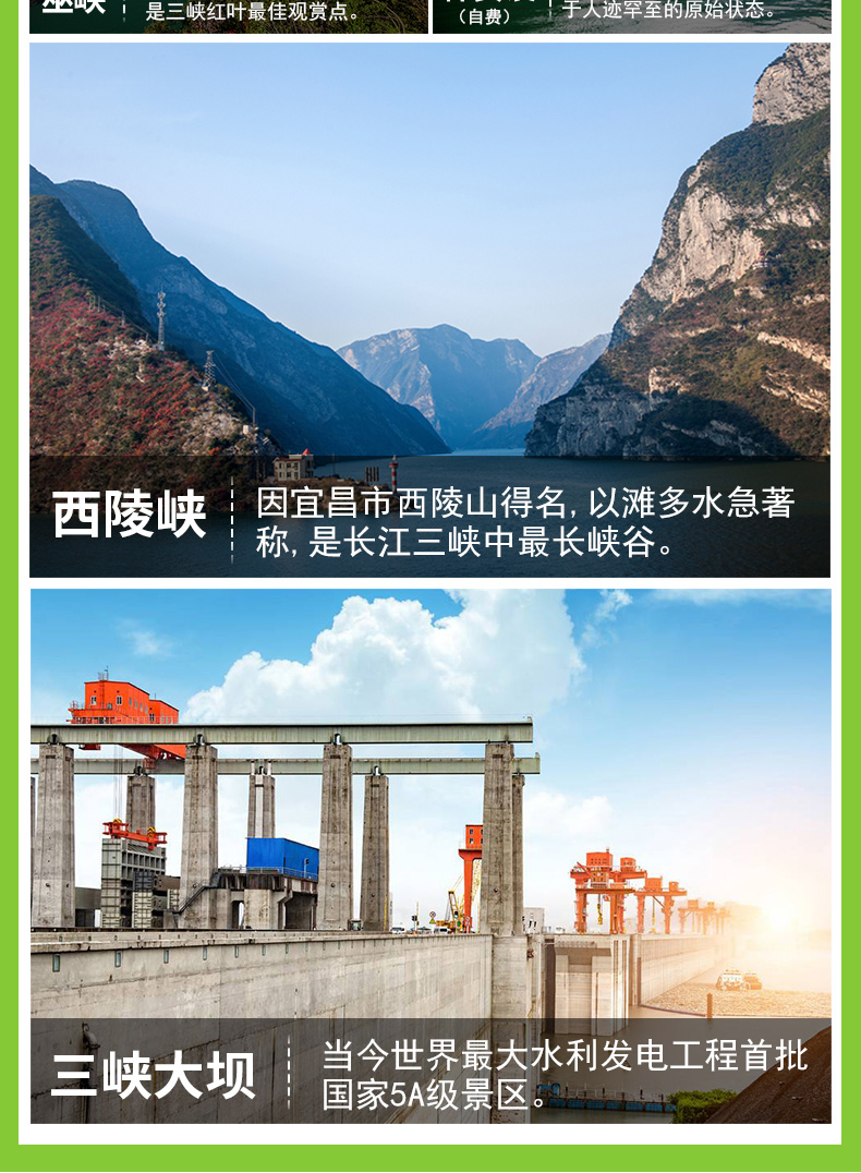 3、包含景點: 長壽菩提古鎮(zhèn)、、張飛廟、三峽大壩;長江三峽(瞿塘峽、巫峽、 西陵峽);三峽大壩景區(qū):含碼頭接---壩區(qū)參觀---送碼頭旅游大巴車費,門票免費(不含景區(qū)觀光電瓶車費用)
